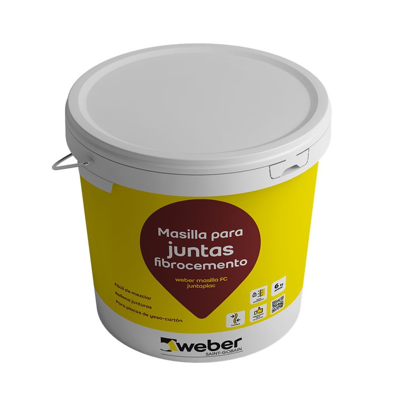 Masilla para Juntas de Fibrocemento (Juntaplac) Galón 6 Kg Weber código QUI694 es un compuesto en pasta de alta adherencia y consistencia plástica, desarrollado específicamente para el tratamiento de junturas en placas de fibrocemento. Su formulación permite un trabajo fácil y controlado, logrando uniones firmes y superficies listas para recibir terminaciones.