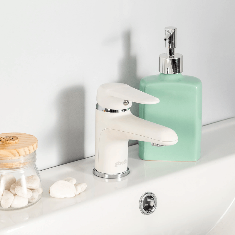 El Monomando Lavamanos Padova Blanco Stretto está diseñado para lavamanos, combinando un estilo moderno con un funcionamiento eficiente. Su manilla con giro en 90° permite mezclar de forma precisa la temperatura del agua, ofreciendo un uso cómodo y controlado en baños residenciales.