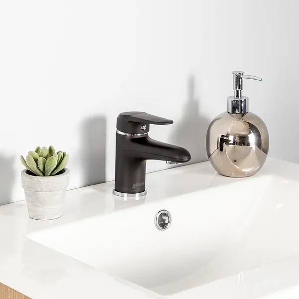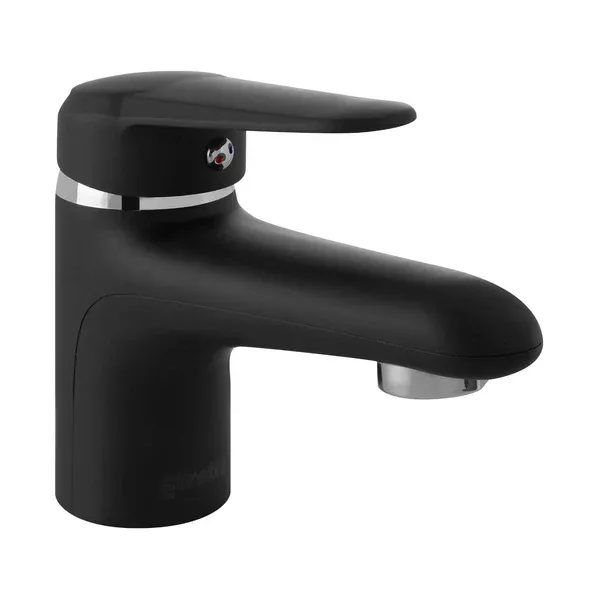 El Monomando Lavamanos Pádova Negro Mate Stretto está diseñado para lavatorios residenciales, permitiendo una mezcla precisa de la temperatura del agua mediante una manilla de accionamiento suave y controlado.