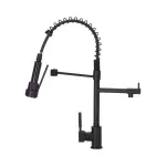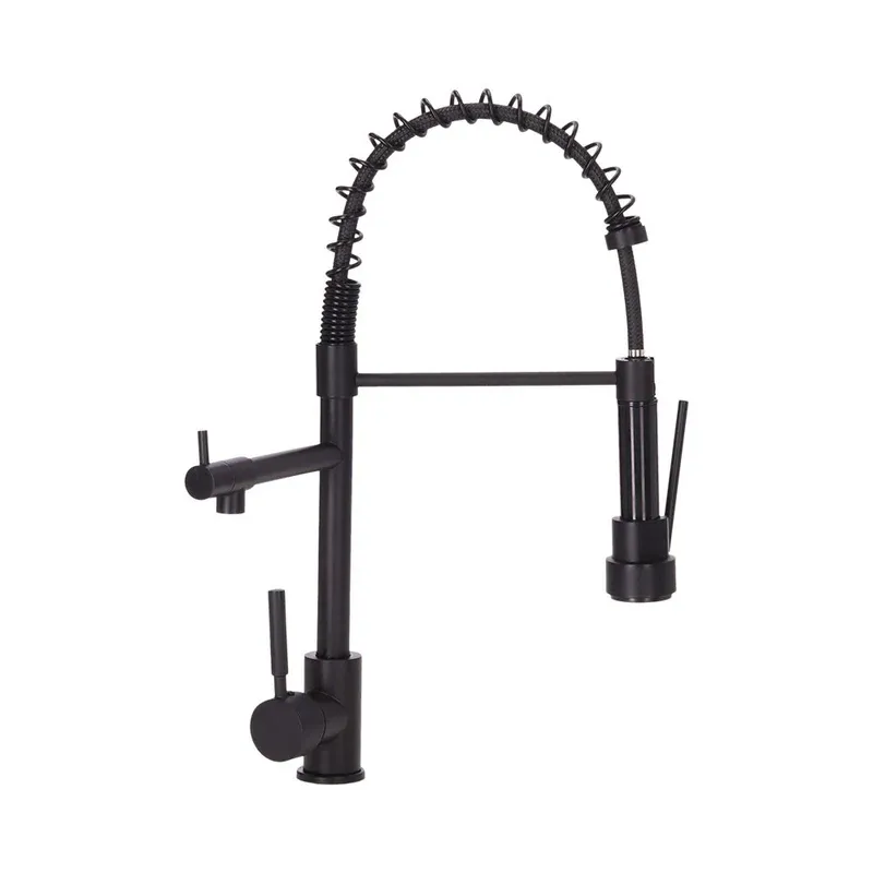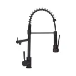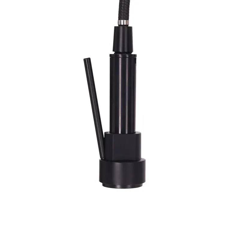 Monomando lavaplatos extraíble Stretto línea Bangor con terminación negro mate, diseñado para optimizar las tareas en cocina gracias a su doble salida de agua y giro completo de 360°, entregando mayor alcance y control durante el uso.