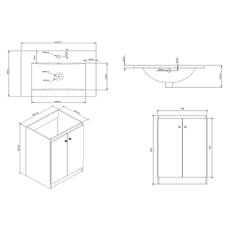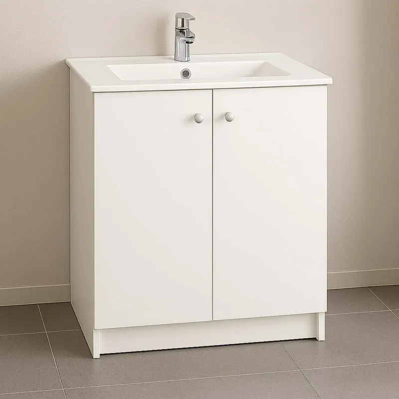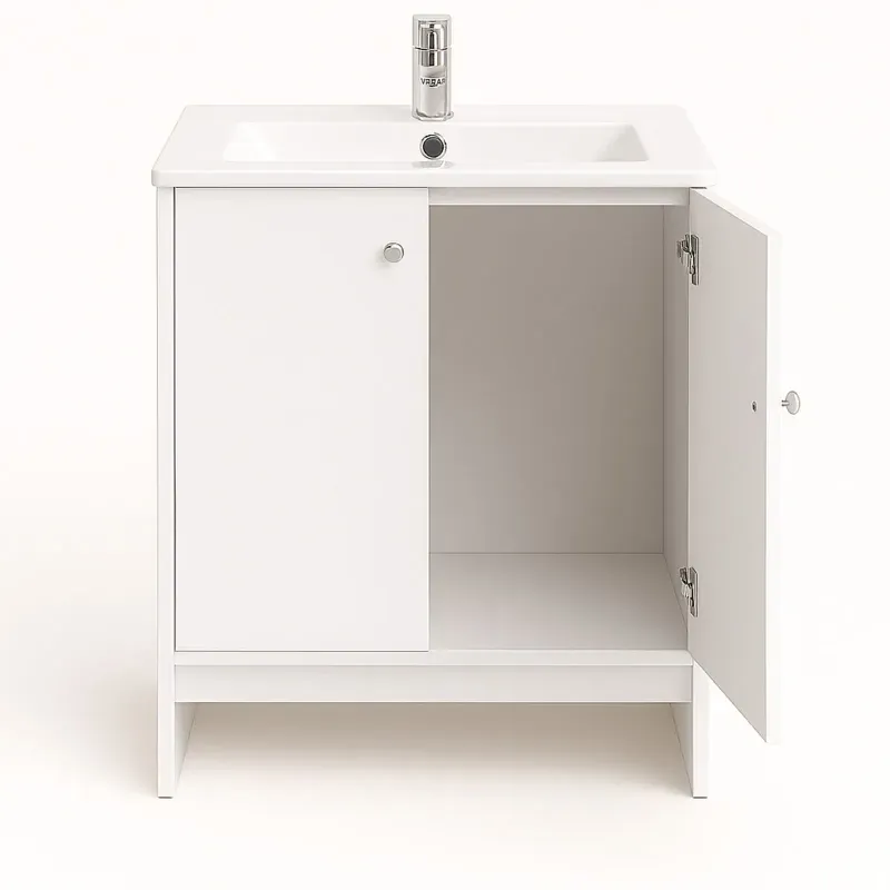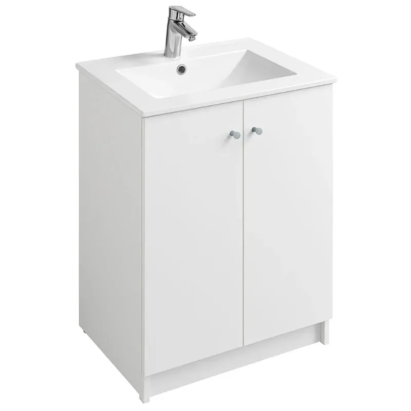 El mueble de baño Klipen “Dante” de 2 puertas a piso, código MDB-26-2579, ofrece una solución funcional y moderna gracias a su acabado blanco y dimensiones de 610×465×840 mm. Su estructura en MDP de 15 mm garantiza estabilidad, mientras que su diseño compacto se adapta bien a baños pequeños o medianos.