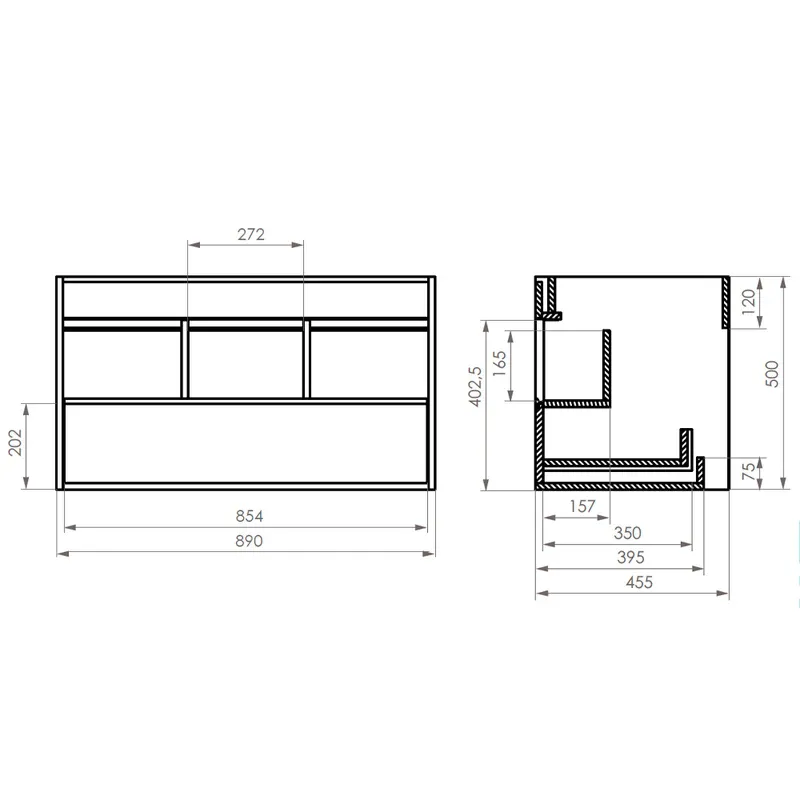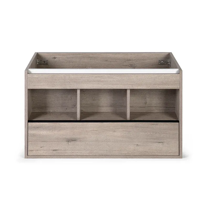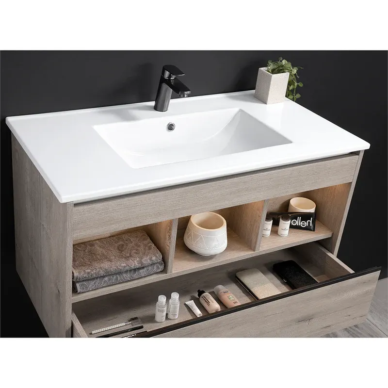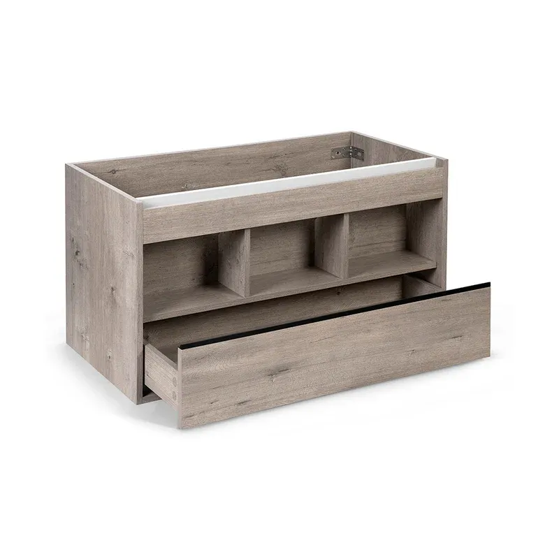 Mueble de baño completo línea Éclair de 90 x 46 cm en terminación lenga, diseñado para entregar una solución integral que combina funcionalidad, diseño moderno y alta resistencia para baños residenciales.