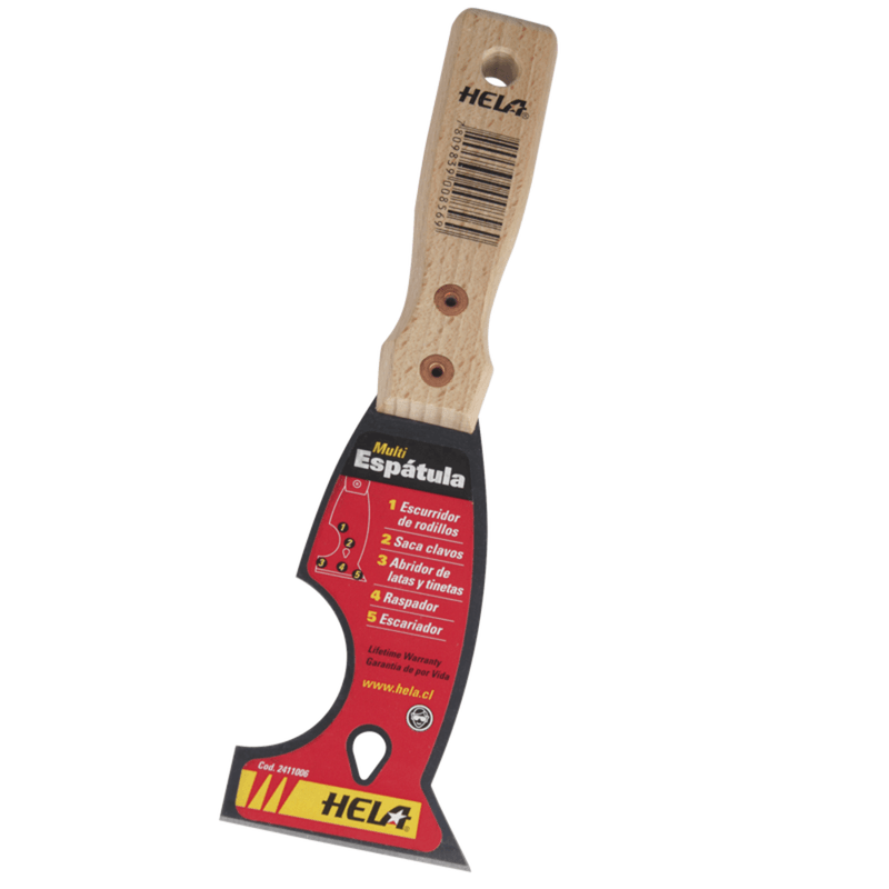 La Multiespátula HELA de 65 mm es una herramienta versátil diseñada para múltiples tareas en trabajos de pintura, mantención y reparación. Su hoja de acero templado ofrece resistencia y durabilidad, mientras que el mango de madera fresado y pulido proporciona un agarre cómodo y firme durante el uso.