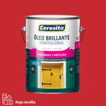 El Óleo Brillante Habitacional Ceresita Rojo Arcilla, código 11385601, es una pintura alquídica de alta resistencia y terminación brillante, ideal para proteger y decorar superficies de madera y metal. Su fórmula proporciona excelente cubrimiento, durabilidad y brillo en interiores y exteriores.