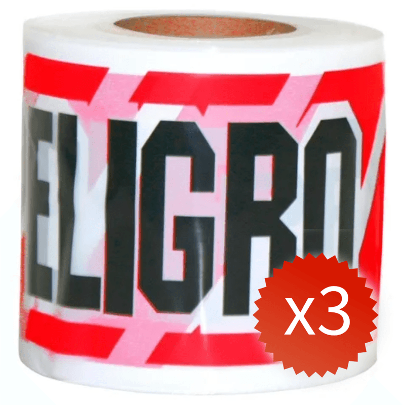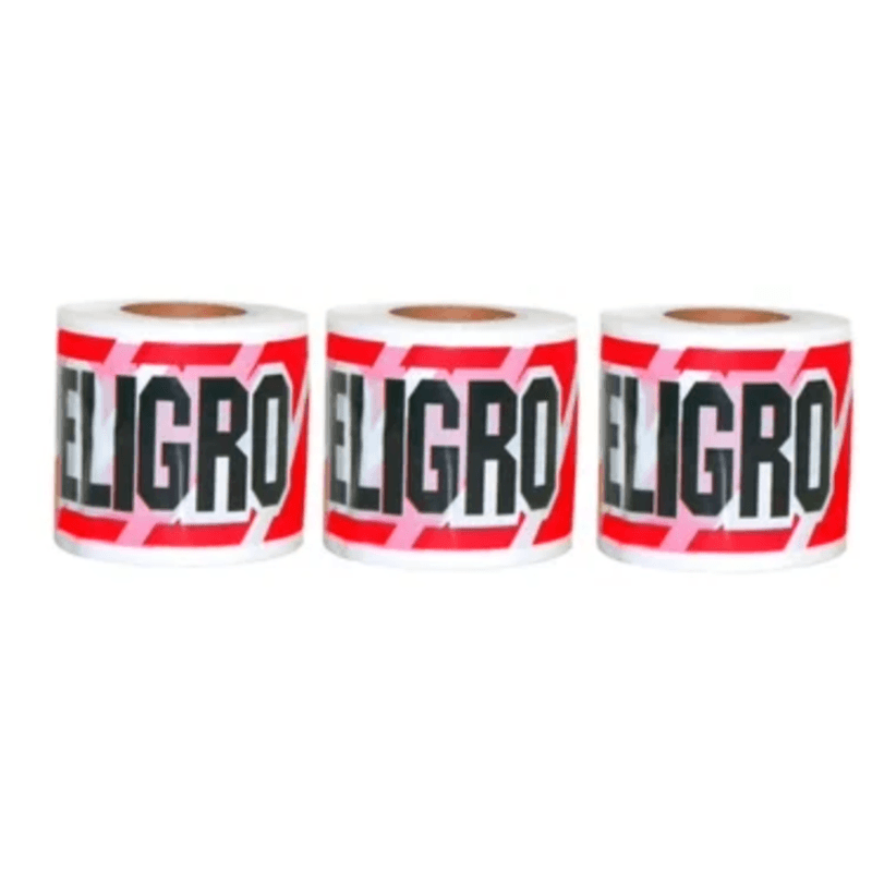 Cada cinta tiene una longitud de 350 metros y presenta el texto "Peligro" impreso en color llamativo sobre fondo contrastante, asegurando su identificación desde la distancia. El material plástico flexible es fácil de manipular y adecuado para condiciones climáticas variadas. Su uso es fundamental en prevención de accidentes y señalización temporal.