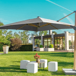 El Parasol Premium Oasis Alcázar 4x4 Gris es una solución elegante y funcional para proteger tus espacios exteriores del sol. Su estructura robusta y tela de alta calidad con protección UV brindan sombra y seguridad, mientras que sus luces LED integradas permiten aprovechar el ambiente también durante la noche.