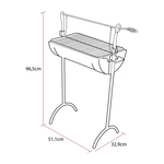La parrilla criolla con roldana es un equipo diseñado para asados al aire libre, equipada con un sistema de elevación que permite regular la altura de la parrilla sobre el fuego. Su estructura metálica resistente y su practicidad aseguran una cocción uniforme y controlada, ideal para preparaciones tradicionales a las brasas.