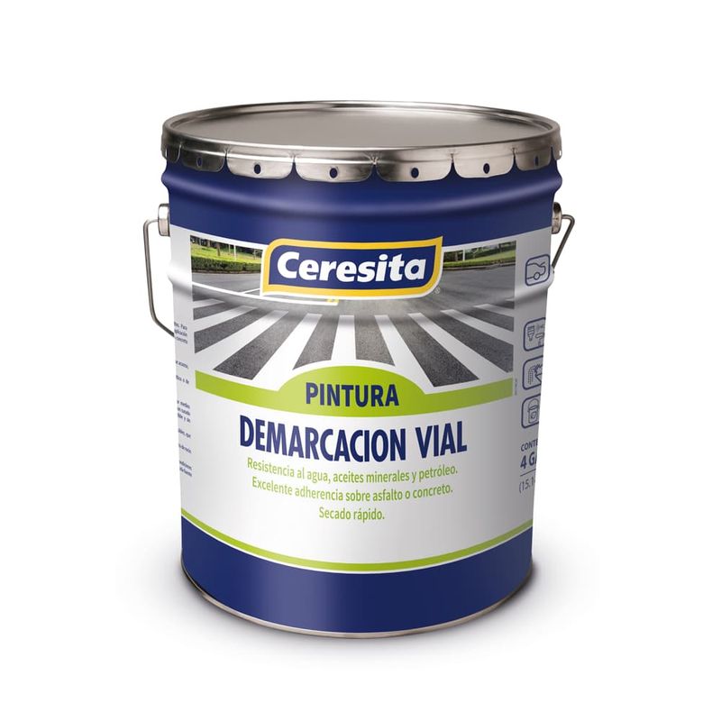 Pintura de tráfico reflectante Ceresita blanco en tineta 4 galones, código 12219030. Formulada con resinas acrílicas y esferas reflectantes integradas (tipo premix), proporciona visibilidad nocturna mejorada y excelente adherencia sobre pavimentos de asfalto o hormigón. Ideal para señalización vial duradera.