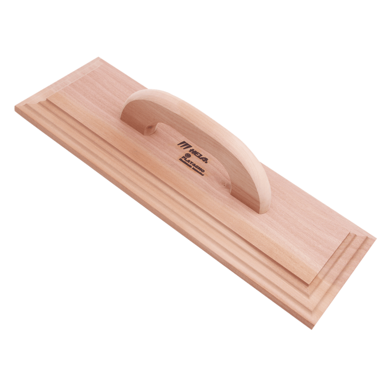 Platacho albañil de madera HELA, fabricado en madera de raulí, diseñado para trabajos de mayor cobertura en muros y superficies amplias. Cuenta con mango entarugado y encolado, que entrega solidez estructural y un manejo cómodo durante jornadas prolongadas.