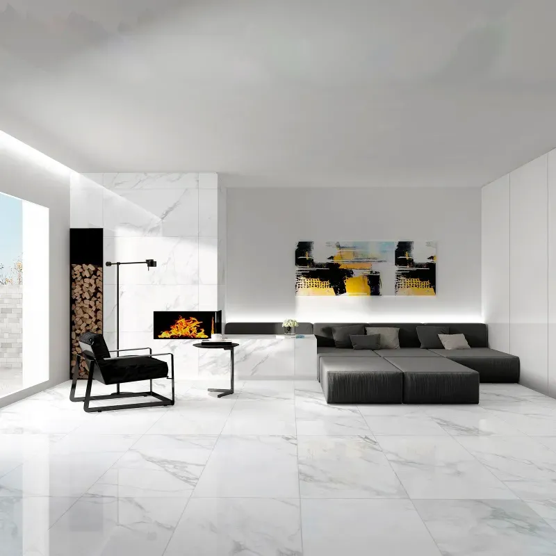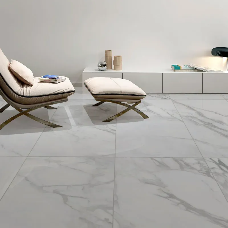 El porcelanato Klipen “Prestige White Pulido” 60×120 cm, código KPP-10-0907, destaca por su acabado pulido con estilo mármol blanco, ideal para pisos y muros interiores que buscan luminosidad y elegancia.