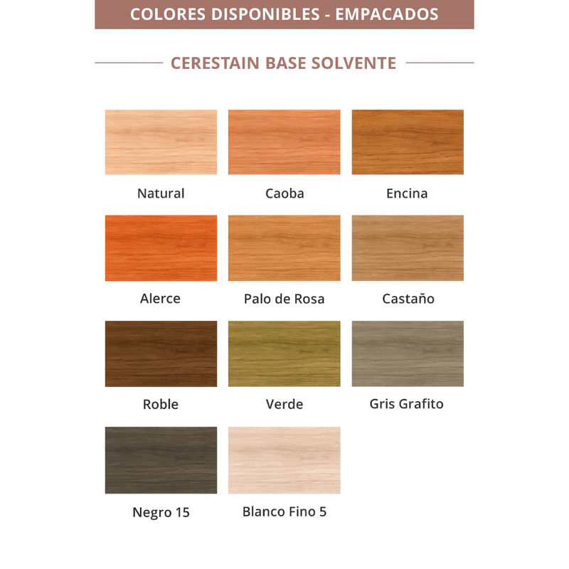 CERESTAIN Verde LT – código 11380704 de Ceresita: impregnante protector para madera en tono Verde, formulado para penetrar en profundidad sin generar película, protegiendo contra radiación UV, humedad y agentes biológicos, con acabado mate translúcido.