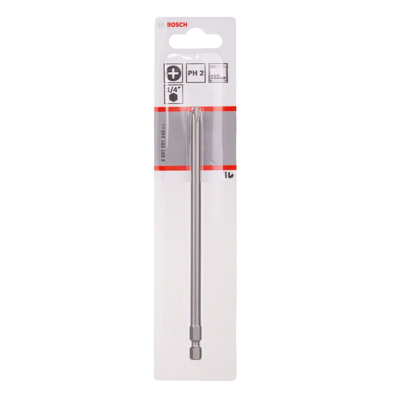 Punta de atornillador Bosch Extra-Hard PH2 de 152 mm (modelo 1540), diseñada para atornillar con precisión incluso en condiciones exigentes, con excelente transmisión de torque y alta durabilidad.