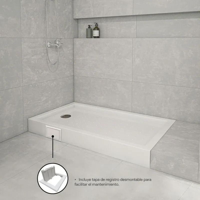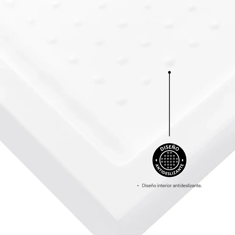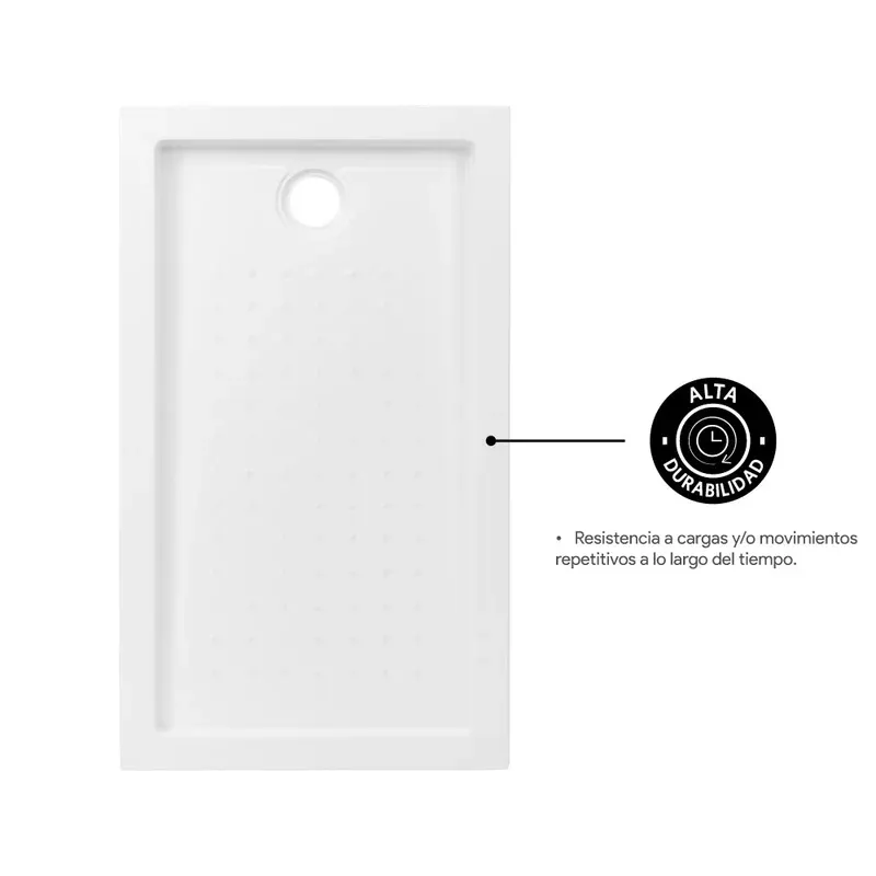 Receptáculo de ducha de 150 x 70 cm con altura de 15 cm, fabricado con materiales de alta resistencia y diseñado para ofrecer seguridad, durabilidad y un correcto escurrimiento del agua en zonas de ducha.