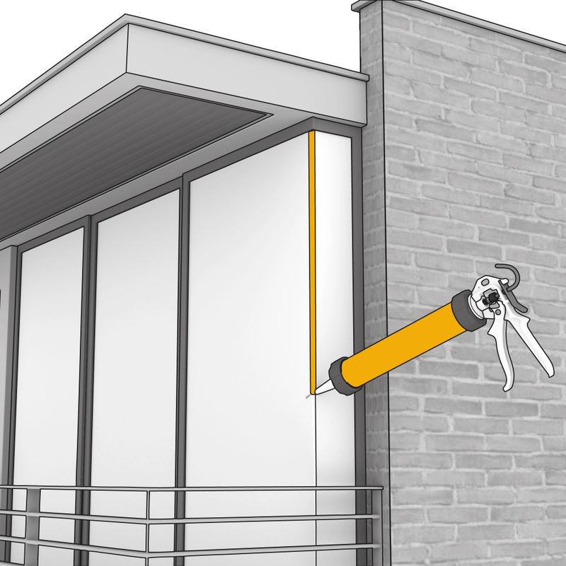 Su excelente adhesión en superficies no porosas y alta resistencia climática permiten realizar sellos durables y limpios en aplicaciones de vidrio y cerámica, manteniendo transparencia y estabilidad en el tiempo.