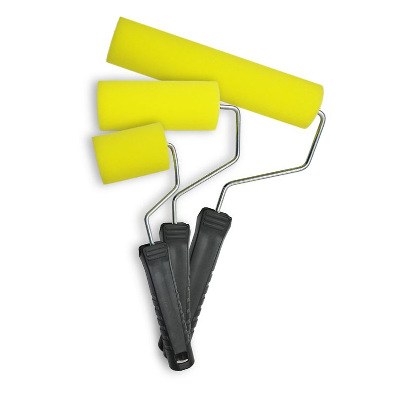 Set de mini rodillos fabricados en esponja de poliéster, diseñados para trabajos de pintura en superficies lisas, entregando una terminación fina y uniforme, especialmente en aplicaciones con pinturas base solvente.
