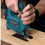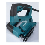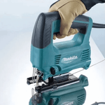 Sierra caladora Makita M4301B de 450 W, con control de velocidad variable y 3 ajustes orbitales más corte recto. Ideal para trabajos precisos en madera, metal y plástico, con gestión de polvo integrada para mayor limpieza y rendimiento.