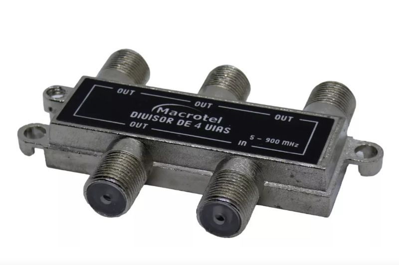 Dispositivo diseñado para dividir una señal de video o televisión en cuatro salidas sin perder calidad ni intensidad. Ideal para instalaciones de cableado en hogares, oficinas y locales comerciales que requieren distribuir la señal a múltiples dispositivos sin interferencias. Compatible con señales de alta definición y fácil de instalar.