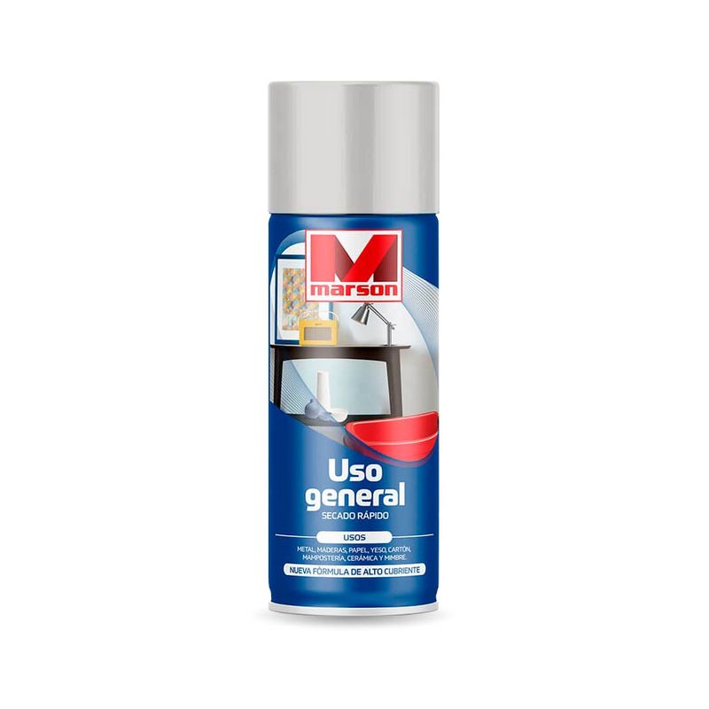 El esmalte en spray de uso general Marson es un recubrimiento alquídico modificado de rápido secado, alto brillo y excelente poder cubritivo. Su formulación de calidad profesional permite una aplicación fácil y uniforme, brindando un acabado metálico tipo aluminio resistente y duradero, ideal para proteger y embellecer superficies de madera, metal o mampostería.