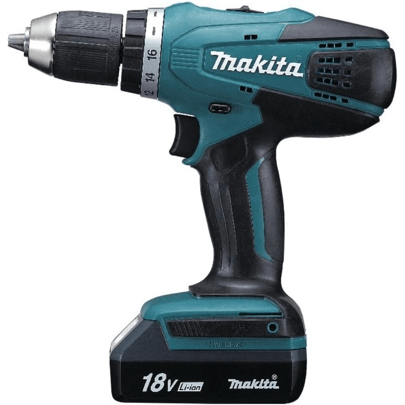 Taladro/atornillador Makita modelo DF457DWE, inalámbrico de 18 V (serie G), con mandril de 1/2″ (13 mm), 2 velocidades y excelente control de par, ideal para aplicaciones profesionales y particulares exigentes.
